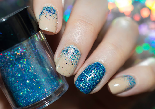 Ezen a képen valamivel jobban látszanak a csillámok. Szerintem ezt a fedőlakkot nagyon nehéz élethűen lefényképezni. Legalábbis 40 képet ellőttem és ez lett a legjobb...pedig már mindenfélefajta fénybe raktam a kacsómat. Azért remélem látjátok a lényeget.