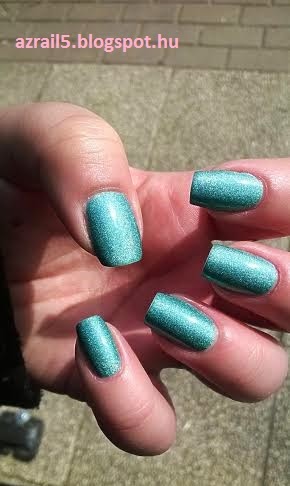 Az igazat megvallva, én nem igazán szeretem a zöld lakkokat, így mikor ezt láttam a pulton annyira nem fogott meg, aztán egy nap beállított vele a Párom, gyorsan fel is kentem a körmeimre, és akkor jött velem szembe az igazi csoda.
