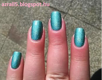 A holo hatás ugyanolyan mint a lila testvérkéjének, viszont ennek a lakknak sokkal erőteljesebb a színe, emiatt úgy tűnhet, hogy erősebb a holo csillogás.