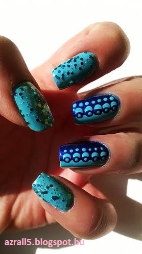 TörlésBejönnek a pöttyök, nagyon szép lett, főleg tetszik, mivel a kék korszakom élem körömlakkok terén :)
