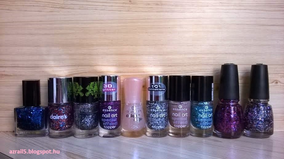 És most jöjjenek a csillámos fedőlakkok (amik természetes fényben szinte befotózhatatlan):