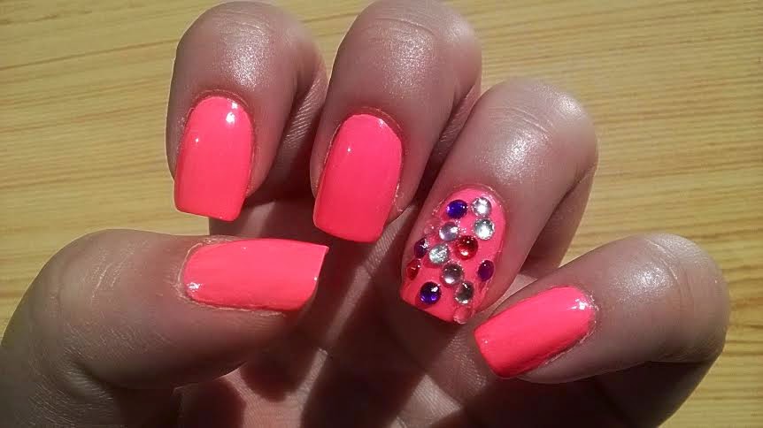 Mivel egy darab neon lakkom van, így sokat gondolkodtam mégis mivel tudnám feldobni az alapszínt. Hosszas gondolkodás után, úgy döntöttem random módon sok-sok követ/strasszot rakok fel a gyűrűsujjamra. Szerintem nagyon nyárias a végeredmény, azt meg még mindig nem tudom eldönteni, hogy nekem valóak-e a neon színek vagy inkább hanyagoljam őket. Talán, ha lebarnul a bőröm jobban fog tetszeni a végeredmény.