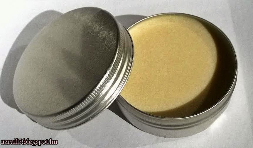 A képen jól látható a tégely külseje, fém színű, színültig tele, a halvány narancs krémmel. A kupakot könnyű lecsavarni, és könnyen is zár.