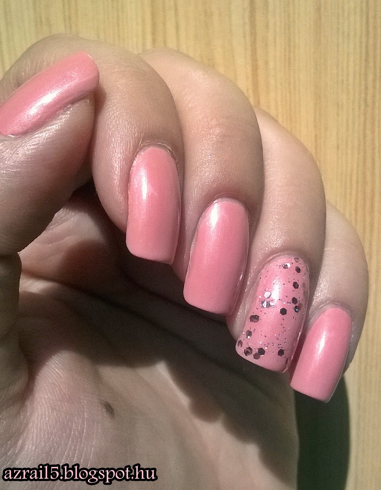Gyorsan szárad, nagyon fényesre. Az üvegben ezüst mikro glitterek találhatóak, ám felkenve ebből egészen más érvényesül, lesz egy enyhe ezüst fénye, az utolsó képen látszik.