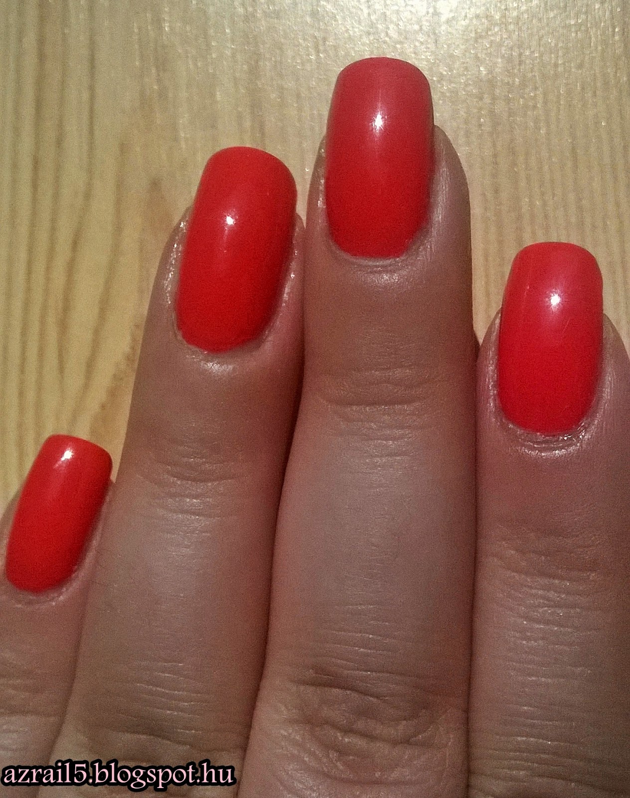 TörlésGyönyörű ez a lakk, nagyon szép olyan pirosas színbe átnyúló, de mégsem piros hanem narancs :)