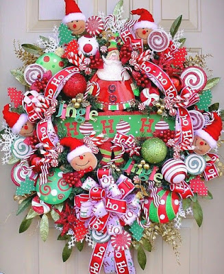 Ha már kinti dekor, akkor az ajtóra el tudnám képzelni ezt a koszorút. Színes, feltűnő, vidám, játékos.