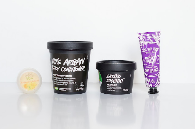 Két Lush kedvencem is akadt a testápolás területén. Az egyik a Ro's Argan testkondicionáló, a másik a Salted Coconut kézradír. A Ro's Argan csodás illata mellett a hidratáló hatása is kiemelkedő. Sosem gondoltam volna, hogy egy kézradír ennyire hatásos. A Salted Coconut egy pótolhatatlan termék lett számomra.